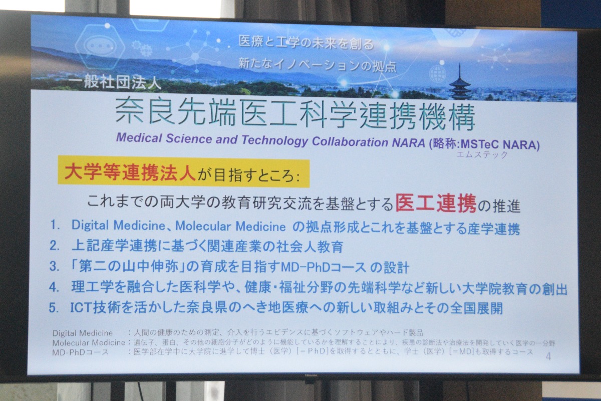 「奈良に存在する両大学が手を携え、地域医療を含め、最新の科学技術を医療分野に導入していくことで、奈良からどのような革新が生まれるのか、楽しみにしていただき、応援いただければ幸いです。」