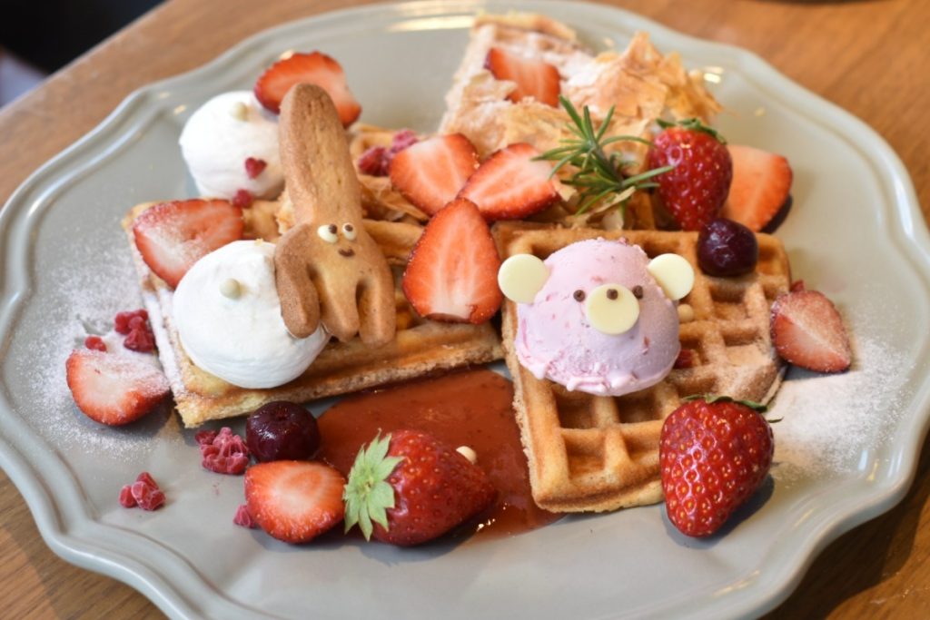 季節ごとにメニューが変わる中、注目はいちごの旬に登場する「古都華ワッフル」だ。