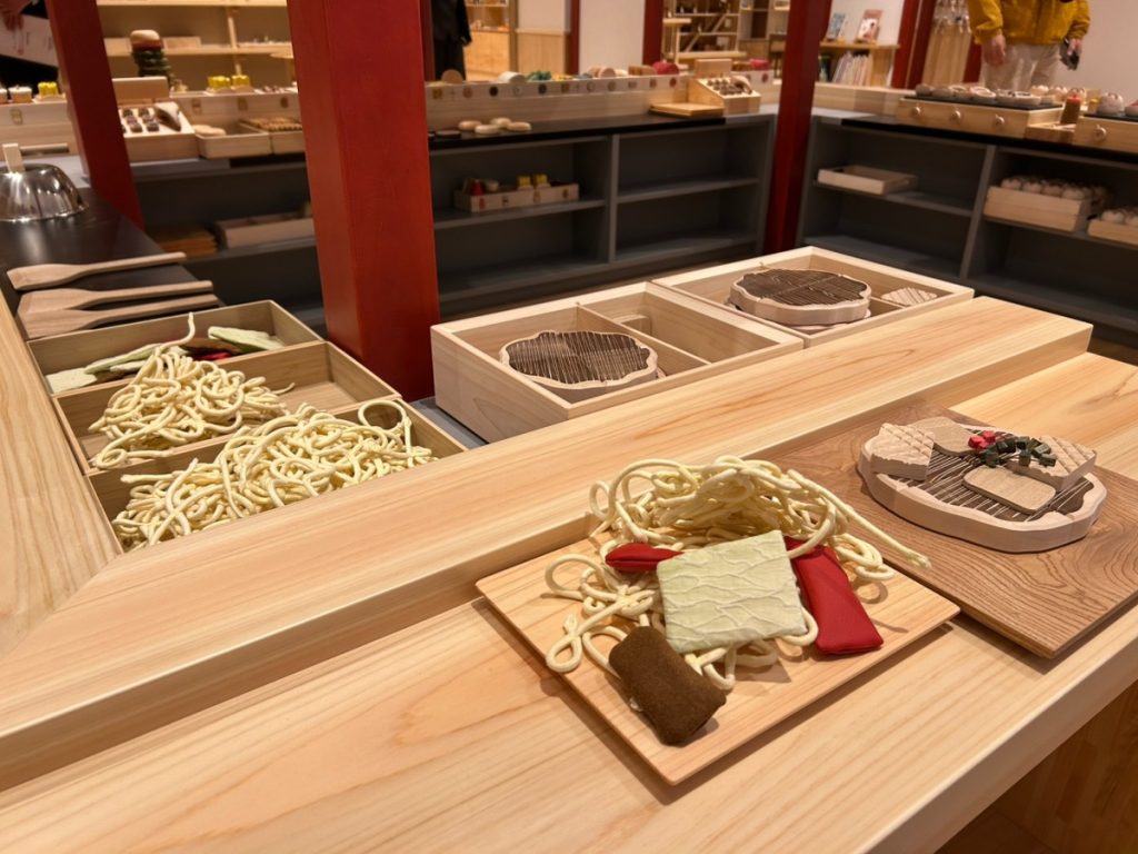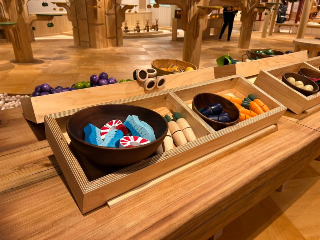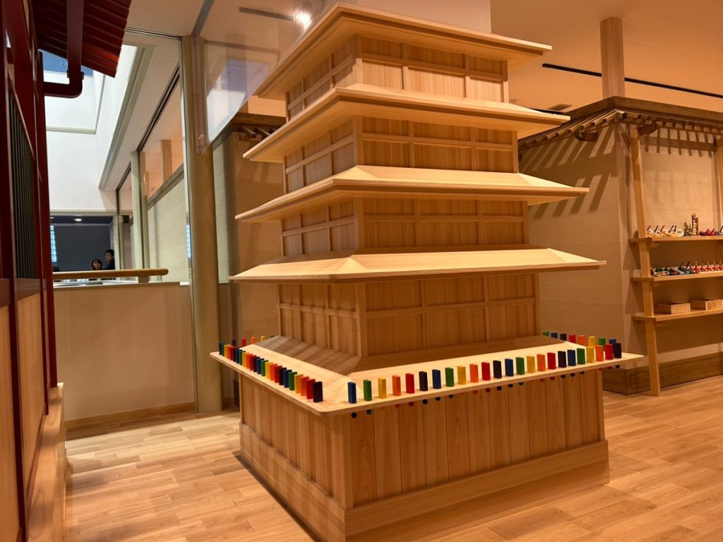 五重塔ではドミノ倒しができたり、お店屋さんごっこなどが楽しめるおもちゃもある。