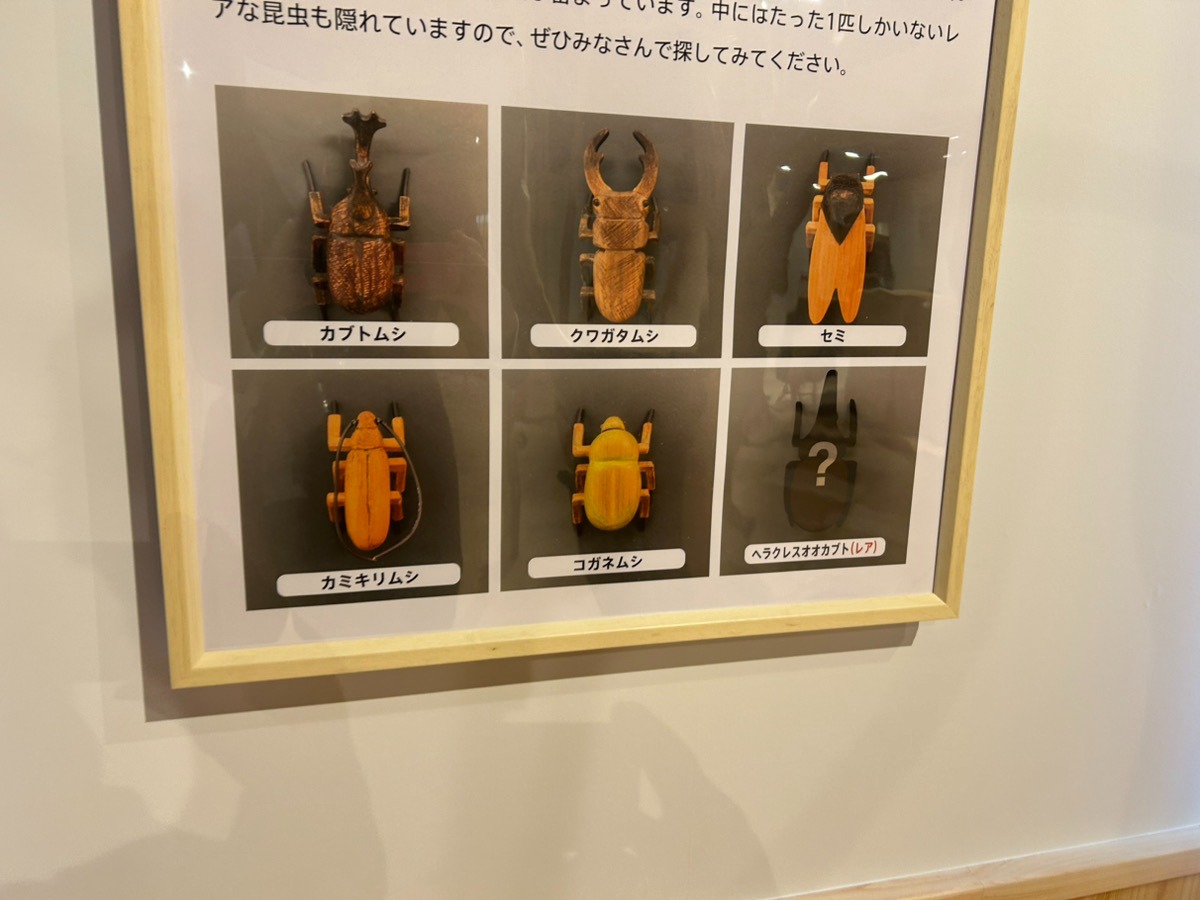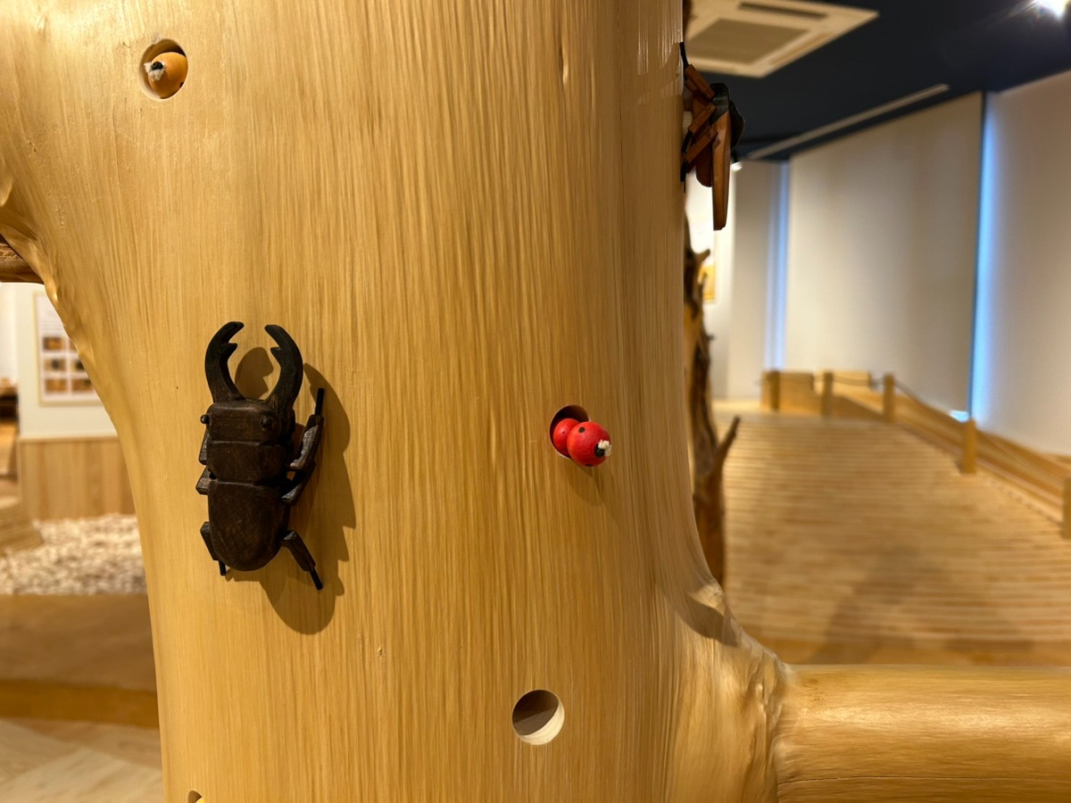 森の中にいるような気分を味わえるコーナーだが、よく木を見るとユニークな昆虫が隠れており、採集が楽しめる。