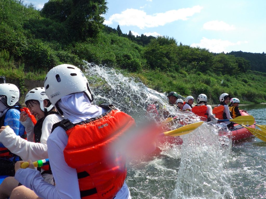 ゴムボートに乗り、川を下るアクティビティ。家族や友人と協力して激流を下るスリルは、忘れられない思い出になるはず。