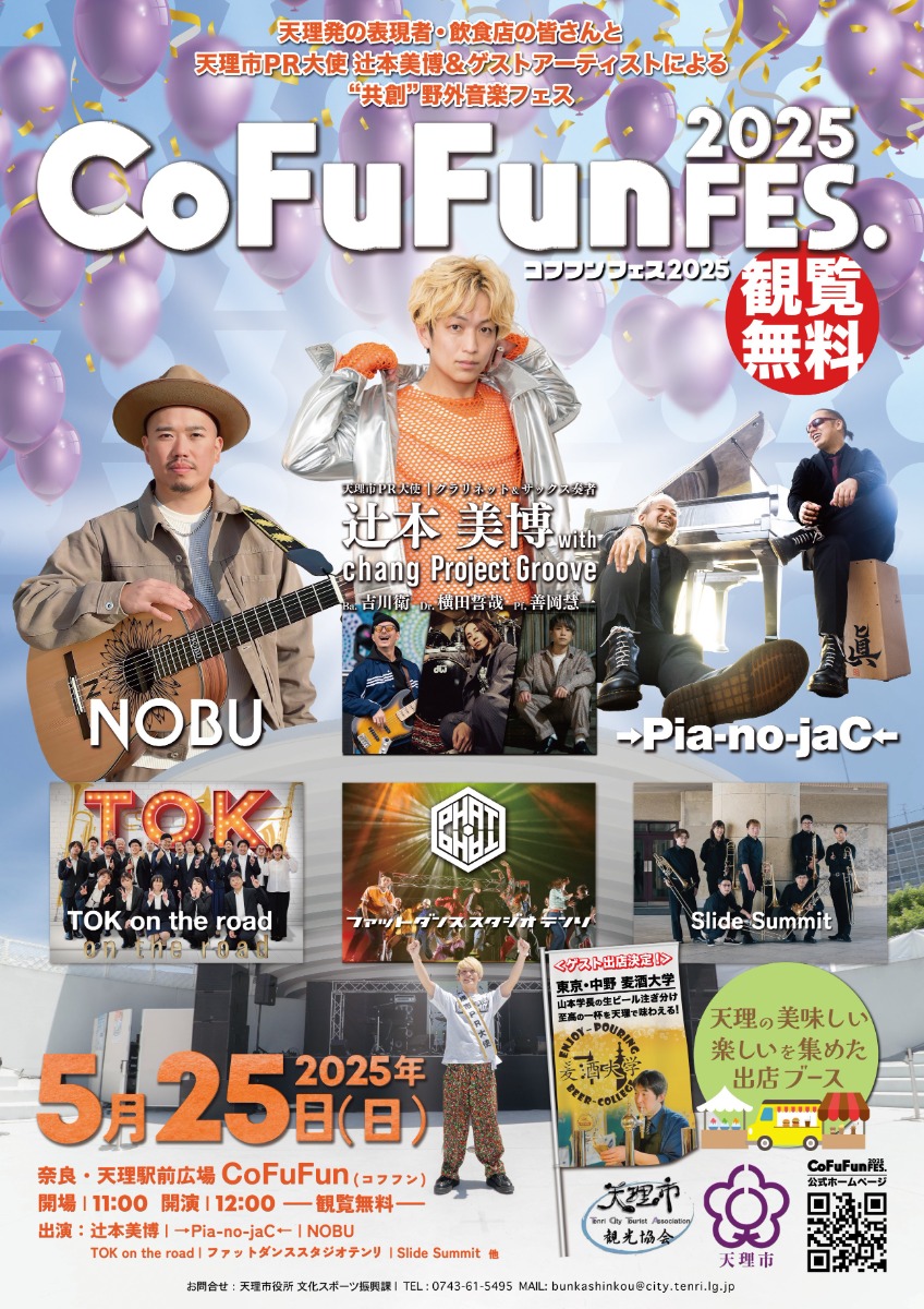 2025年5月25日(日)に開催されるこのフェスは、天理市PR大使である辻本美博(POLYPLUS/Calmera)と天理市が共同主催し、今回で4回目を迎える。