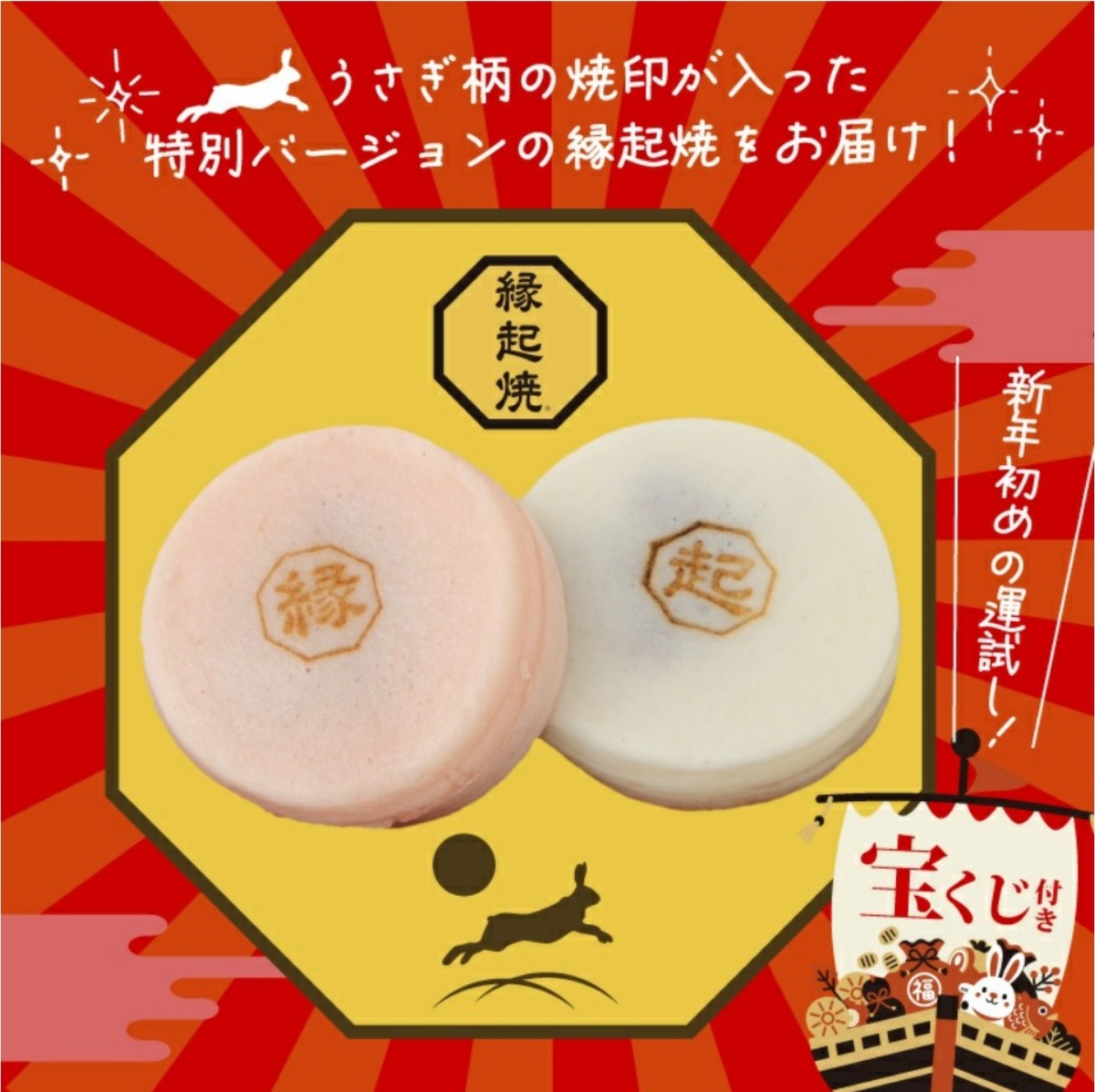 その1.⼤阪の新名物「縁起焼」うさぎ柄の焼印付き ※後⽇⾃宅に配送
