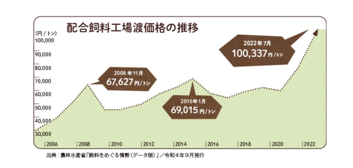 日本は飼料用穀物の多くを海外から輸入しているため、こうした世界的な値動きが畜産物の価格に影響を及ぼしてしまいます。