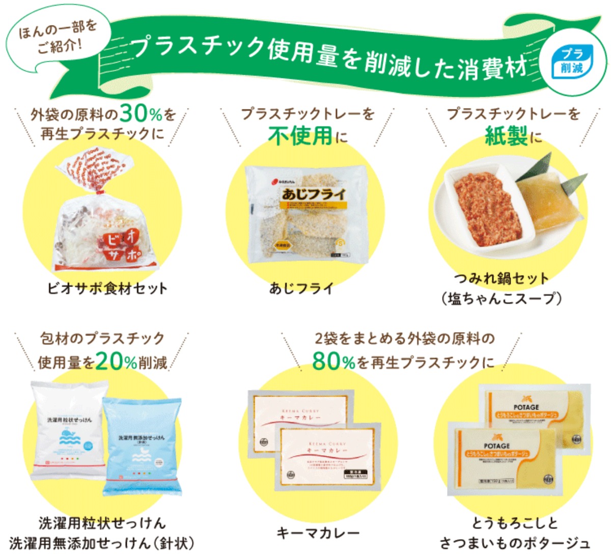 2021年度には、98品目の消費材で容器包装のプラスチックを削減しました。