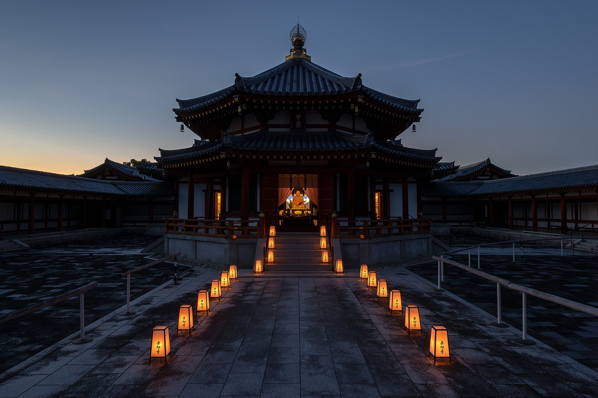 薬師寺では、玄奘三蔵院伽藍の夜間特別拝観が行われる。