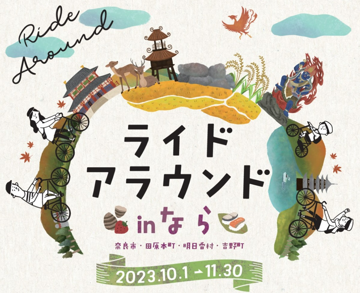 2023年10月1日(日)~11月30日(木)まで自転車周遊イベント「ライドアラウンド in なら」が行われる。