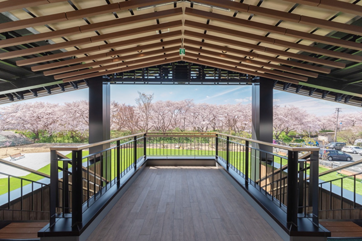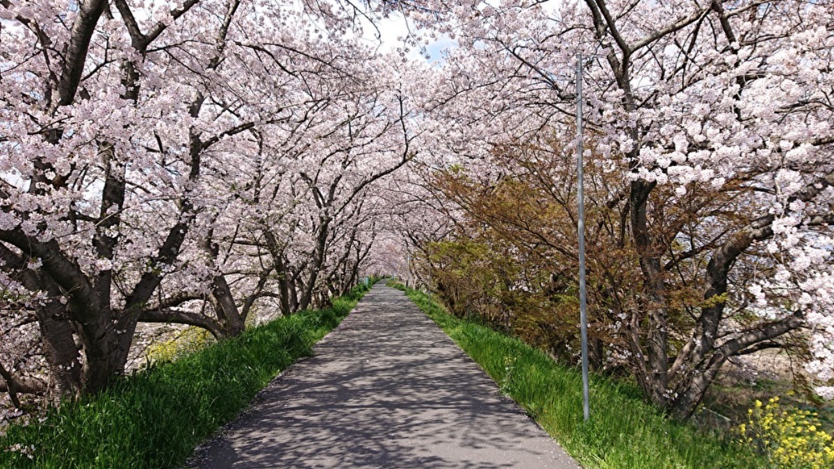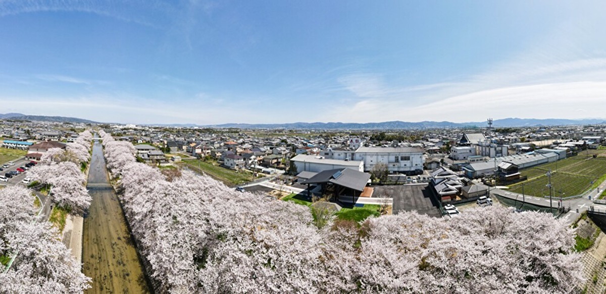 3月下旬から4月中頃にかけて、ブリューパークの目の前には高田川沿いの桜並木が見頃を迎え華やかに咲き誇る。