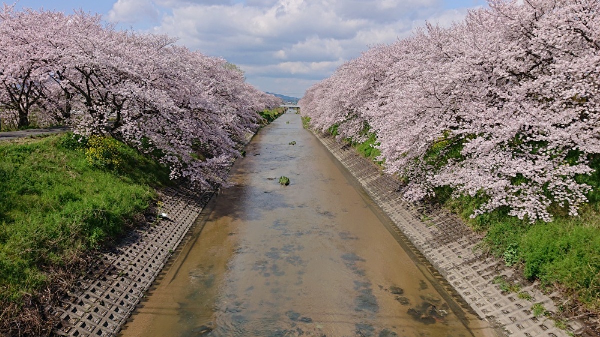 この高田川沿いの桜並木は「箸尾の桜並木」と呼ばれ、桜の隠れた人気スポット。