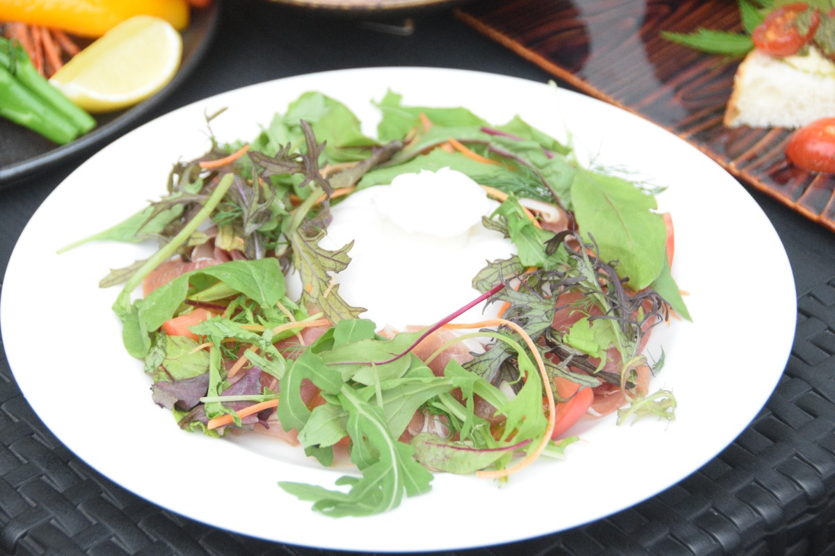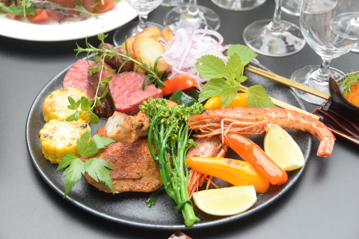 新鮮な夏野菜を盛り合わせた「ベジタブルイタリアンアンティパスト」の前菜からスタートし、群馬産のフレッシュなブッラータチーズとパルマハムを合わせた「ブッラータ川場とフレッシュトマト セルバチコ パルマハムのサラダ」や、エスニックな風味で串刺しのケバブ風に仕上げた「ブロシェット スパイスをきかせたケバブ風 ミントソースとタマネギのサラダと共に」など、スパイスやハーブを利かせたビールと好相性のメニューをコーススタイルで用意!