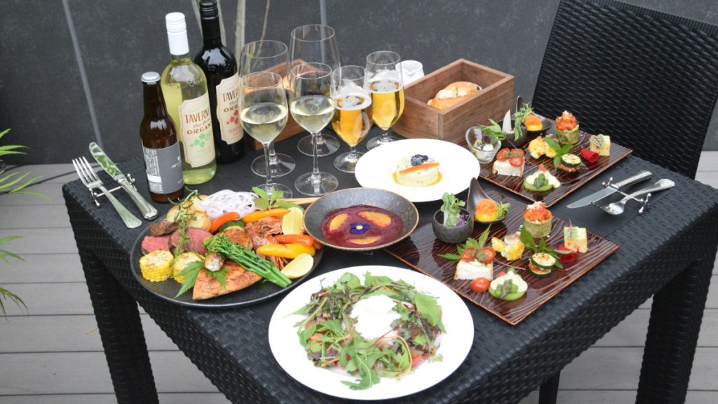 新鮮な夏野菜を盛り合わせた「ベジタブルイタリアンアンティパスト」の前菜からスタートし、群馬産のフレッシュなブッラータチーズとパルマハムを合わせた「ブッラータ川場とフレッシュトマト セルバチコ パルマハムのサラダ」や、エスニックな風味で串刺しのケバブ風に仕上げた「ブロシェット スパイスをきかせたケバブ風 ミントソースとタマネギのサラダと共に」など、スパイスやハーブを利かせたビールと好相性のメニューをコーススタイルで用意!
