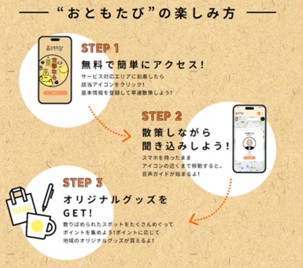 今回は実際に「ならまち・奈良公園エリア」の「カタルナラ×メグルナラ」を使ってみた。