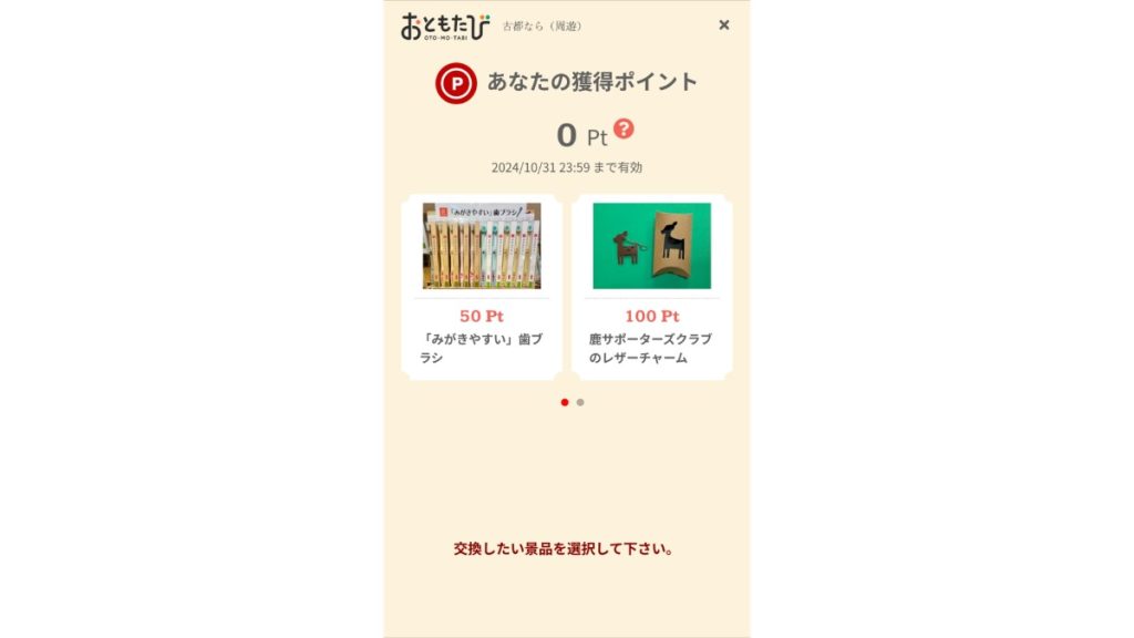 「ならまち・奈良公園エリア」のオリジナルグッズは50ポイントから引き換え可能!