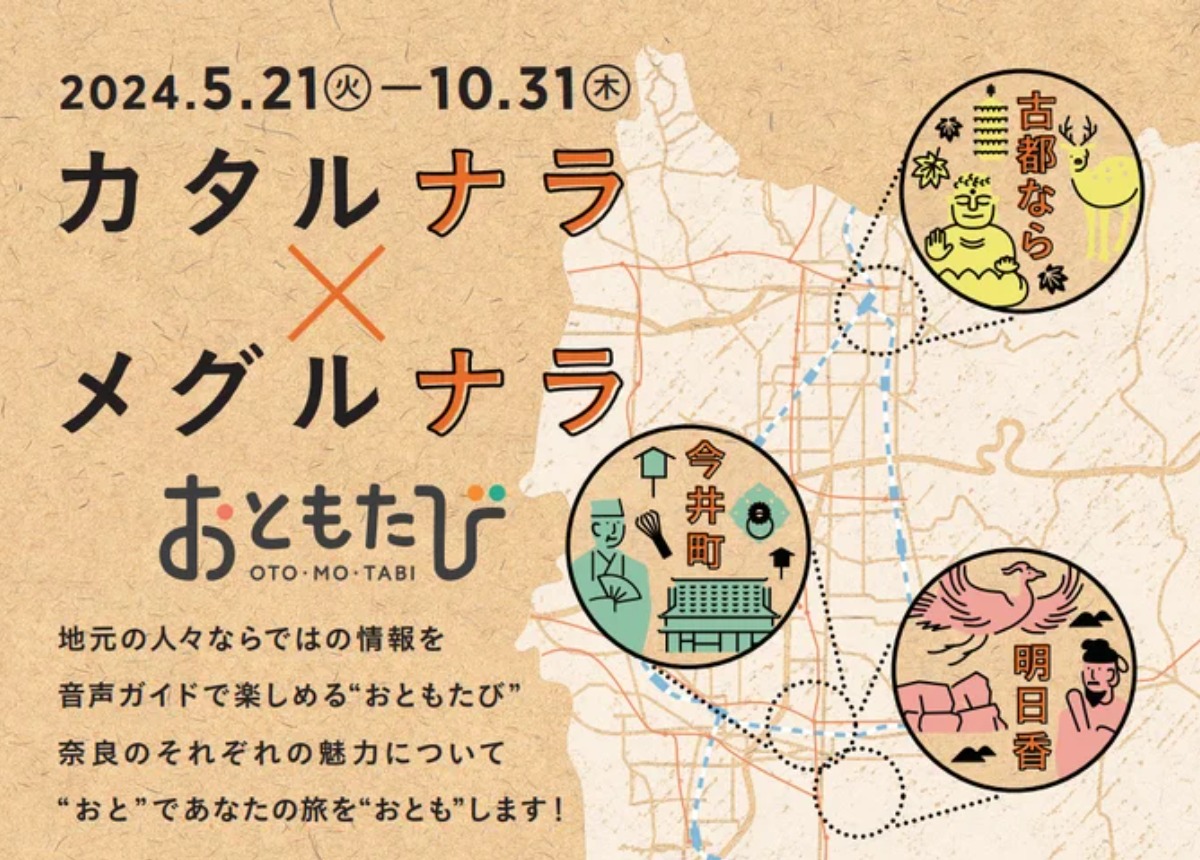 『一般社団法人関西イノベーションセンター』と『株式会社Otono』は、位置情報に連動した散策型音声ガイドサービス「おともたび」を活用し、奈良県3エリア(奈良市、橿原市、明日香村)を対象とする周遊イベント「カタルナラ×メグルナラ」をリリースした。