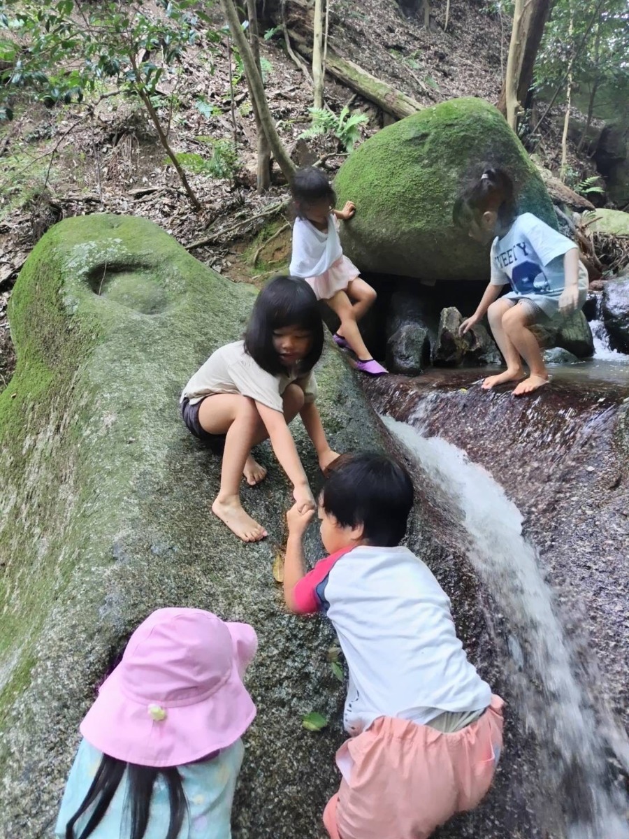 自然の中で自由に遊ぶことを通じて、子どもの創造力や想像力を育んでている。