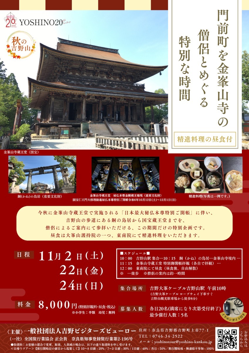【日帰りツアー】秋の吉野山 門前町を金峯山寺の僧侶とめぐる特別な時間(精進料理の昼食付)
