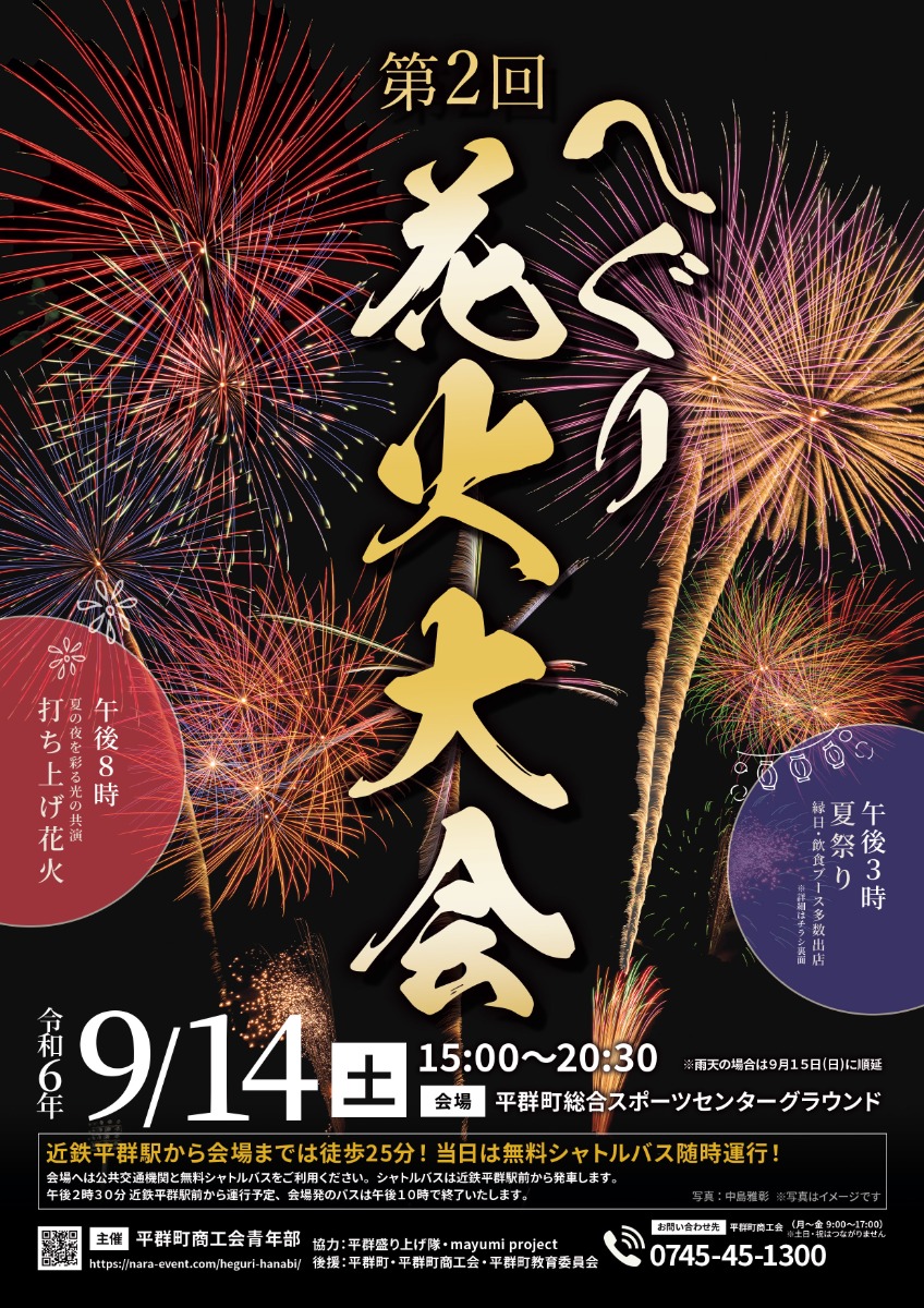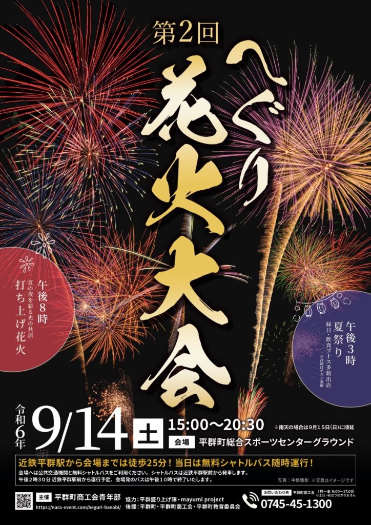 ※花火大会へは近鉄平群駅からの無料シャトルバスをご利用下さい。