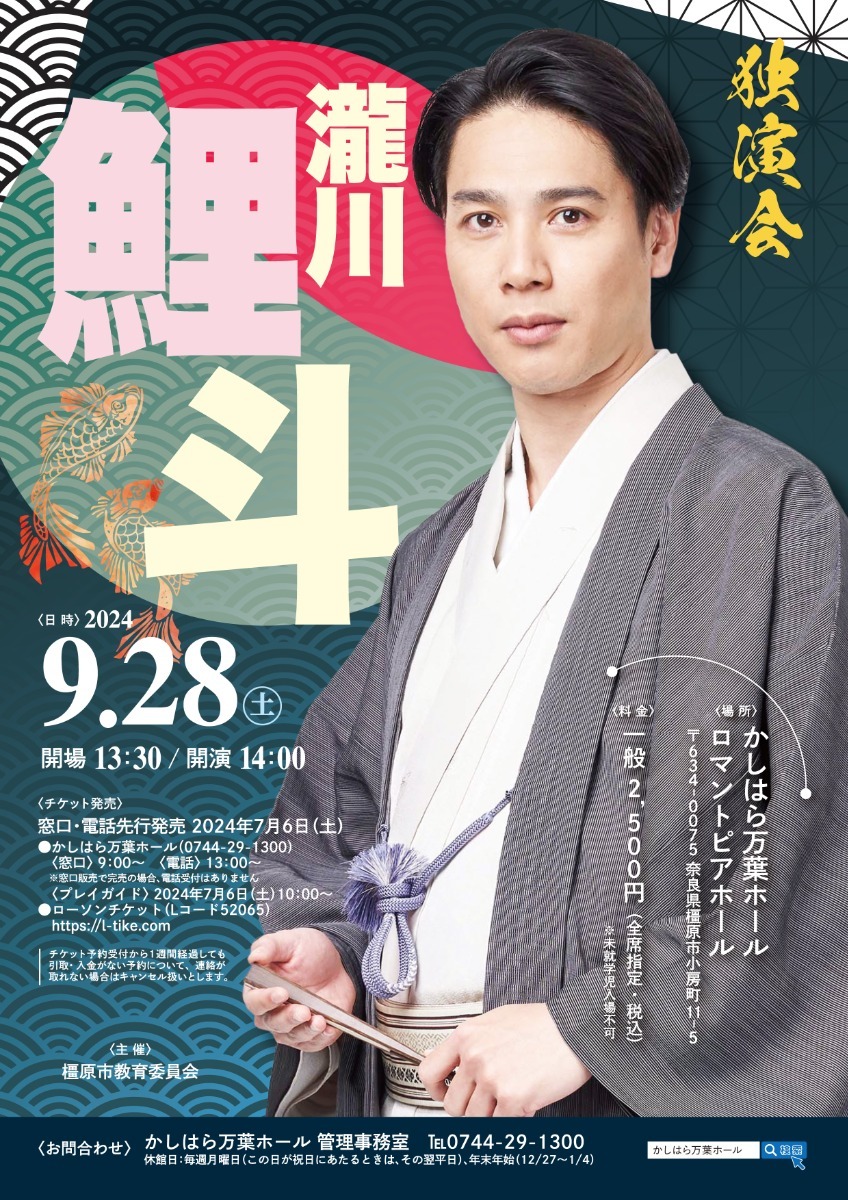 奈良県橿原市の『かしはら万葉ホール』にて、「瀧川鯉斗 独演会」を開催!