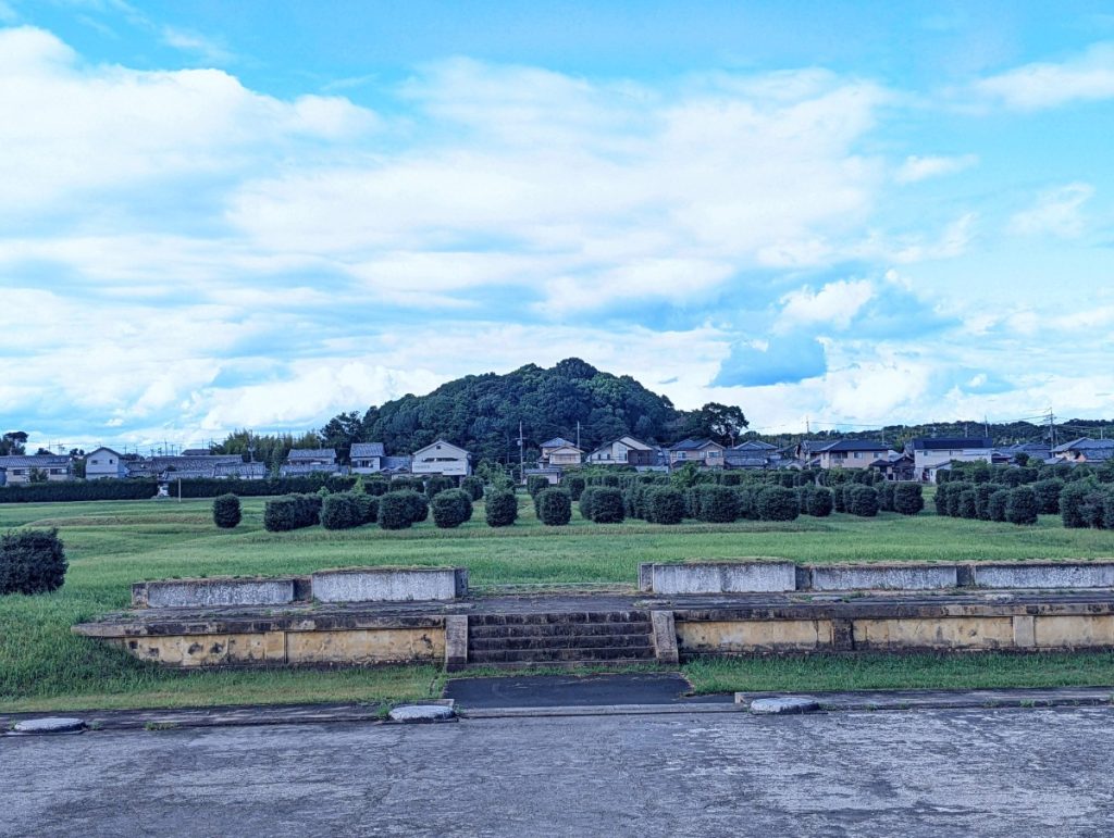 平城宮内裏(南から)。奥の緑の丘は平城天皇の楊梅陵に比定されるが、平城宮造営時に削平されたので、おそらく被葬者は異なる 撮影:難波美緒
