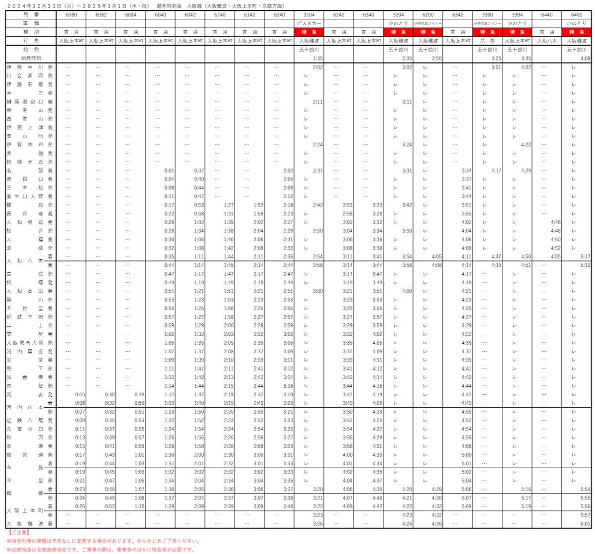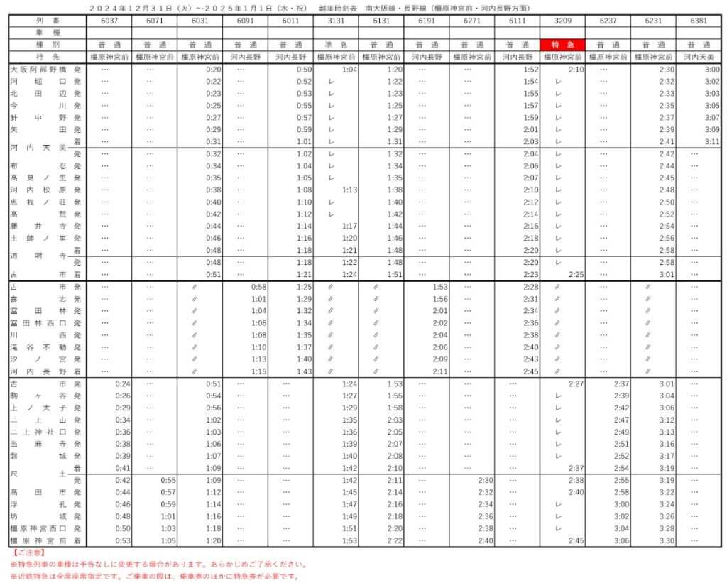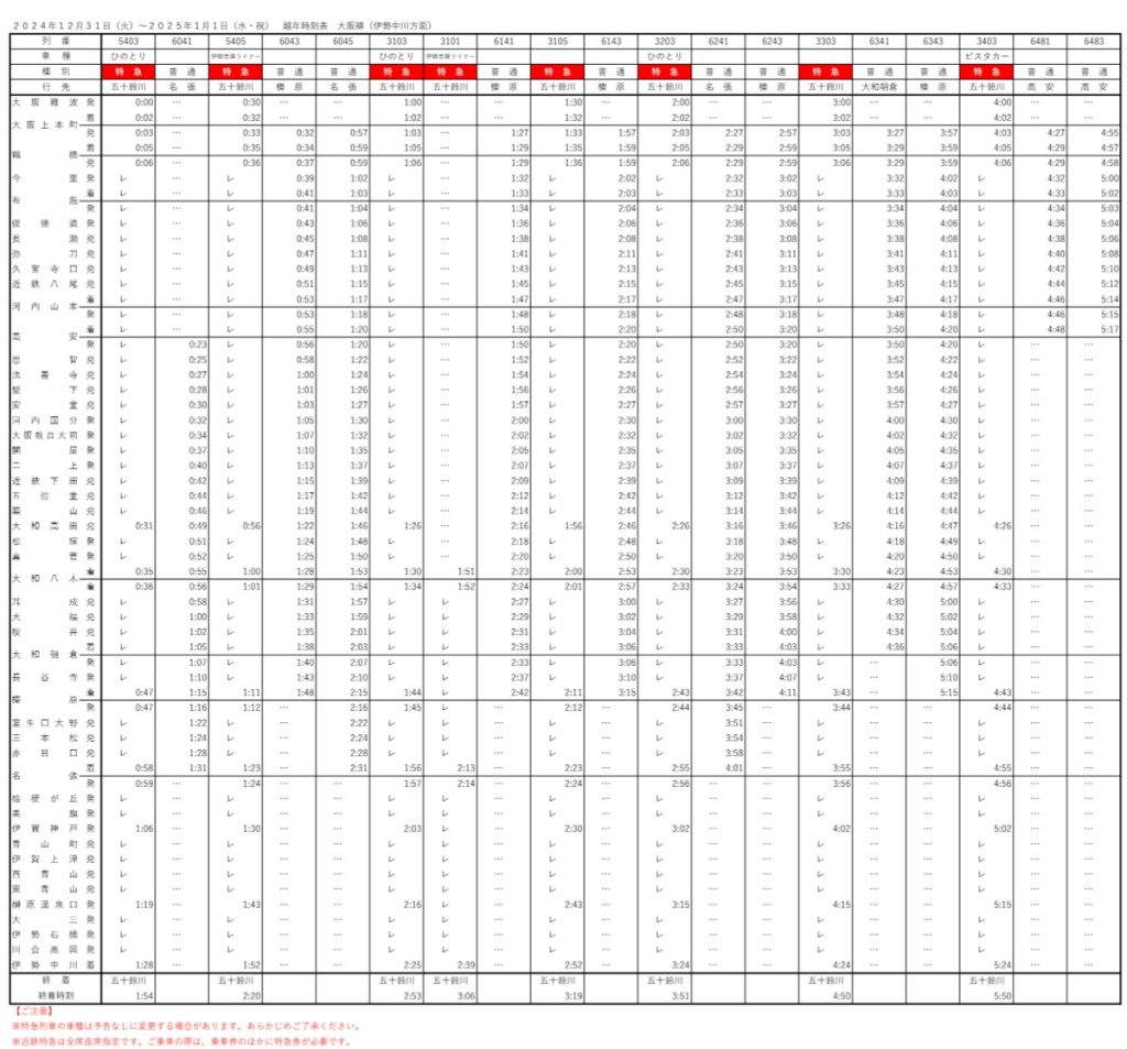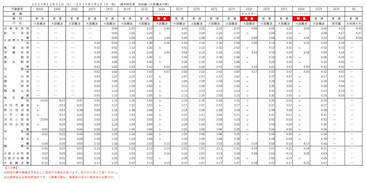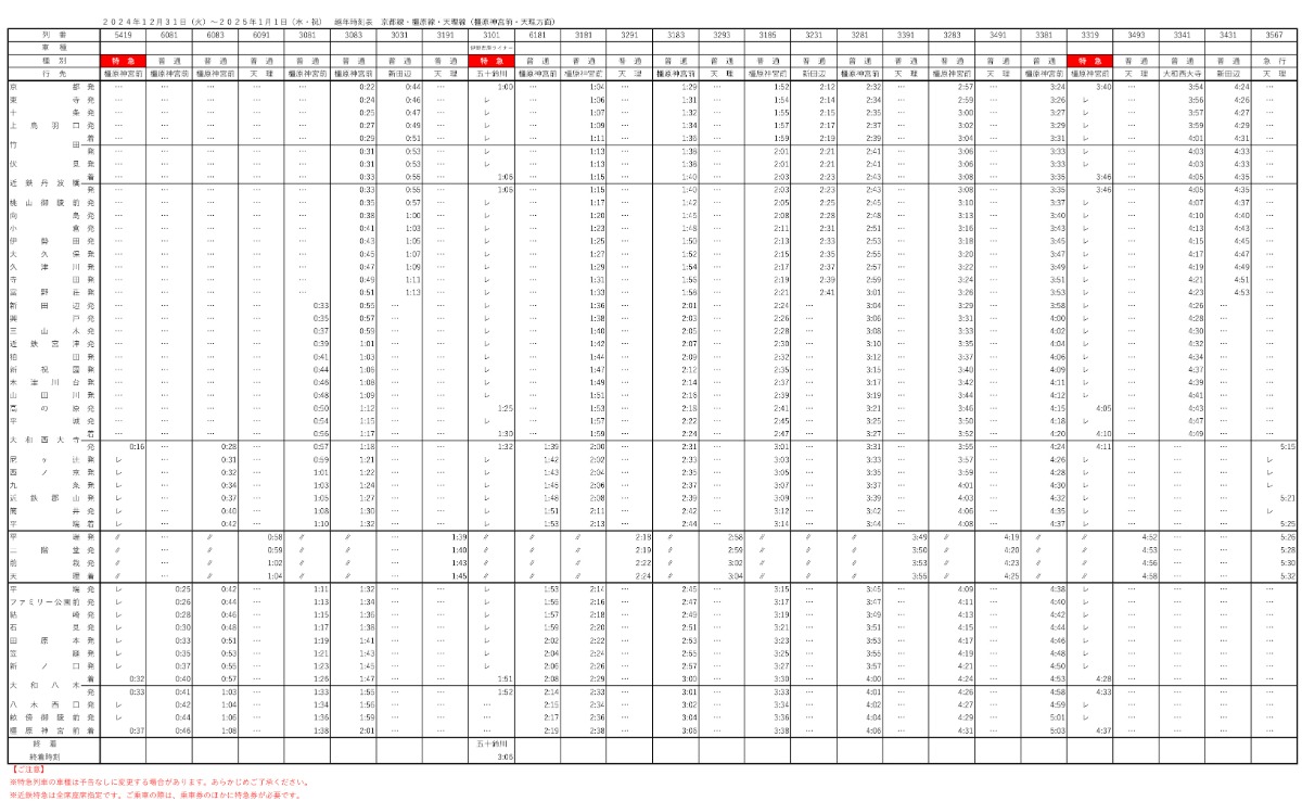 近鉄年末年始ダイヤ!