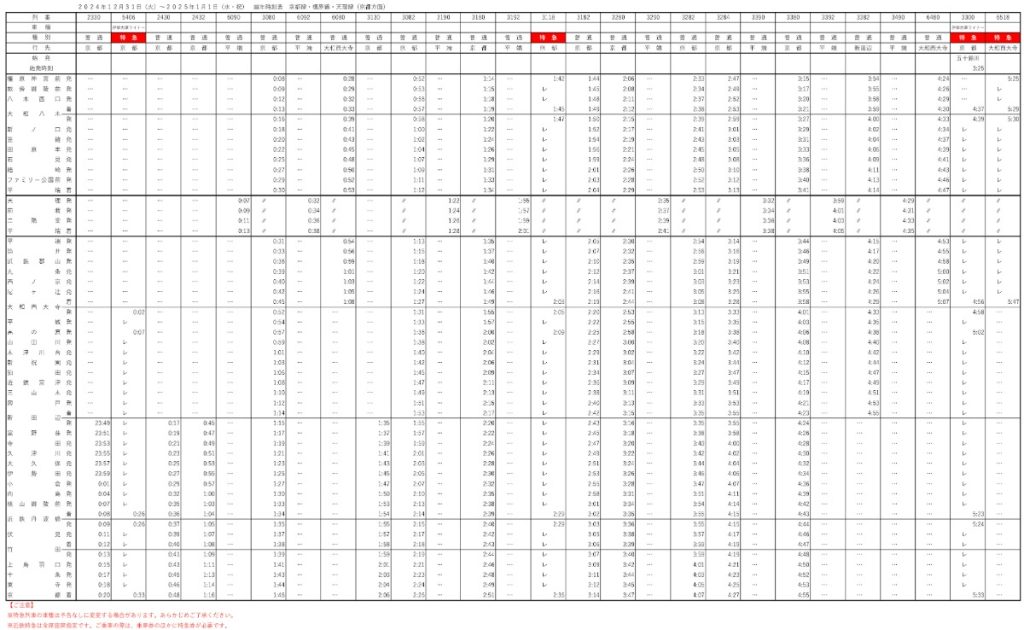 初詣や帰省に便利!特急・普通列車の時刻表も掲載。