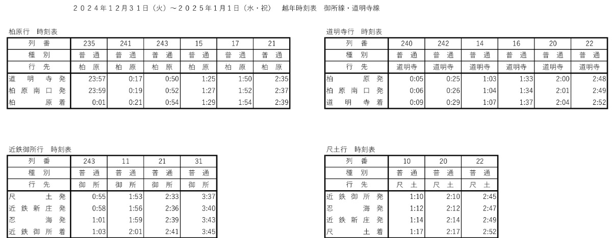 橿原神宮前駅発 ⇒ 大阪阿部野橋駅行き(0時台)