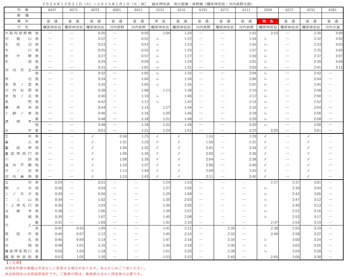 大阪阿部野橋駅発 ⇒ 橿原神宮前駅行き (2時台)