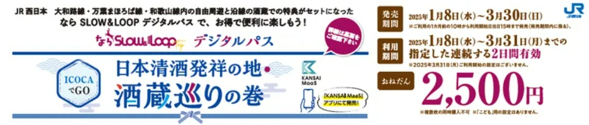奈良商工会議所は、JR西日本や酒蔵と連携し「ならSLOW&LOOPデジタル周遊パス」を発売