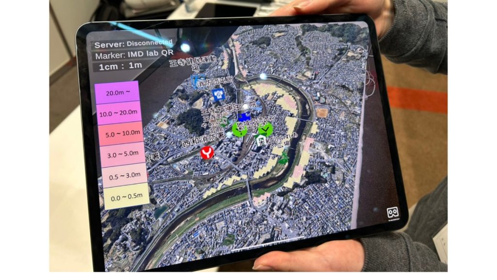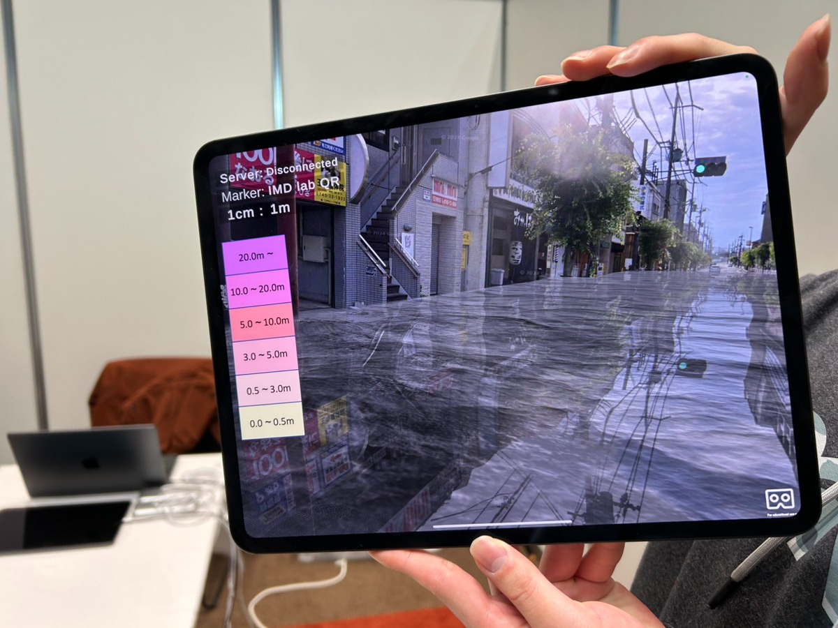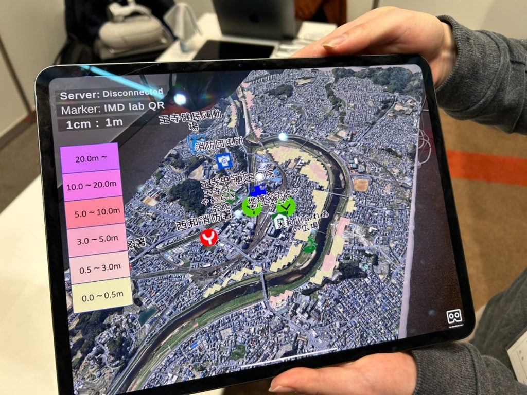 奈良先端科学技術大学院大学のブースでは、XR技術で水害のリスクを自分化するサービスが紹介されていた。
