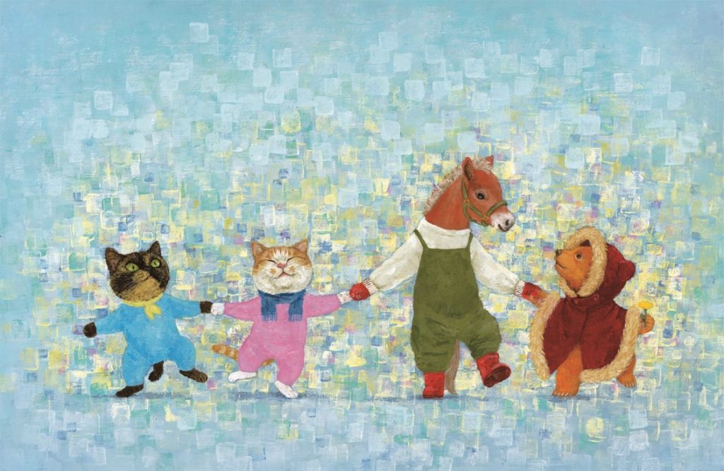 絵本の物語を大胆な構図と繊細なタッチで描き、怖さとユーモア、美しさと不思議さをあわせもった画風が魅力の町田さんの絵本には、様々な物語の中で時に主人公、時に脇役として「猫」が登場する。
