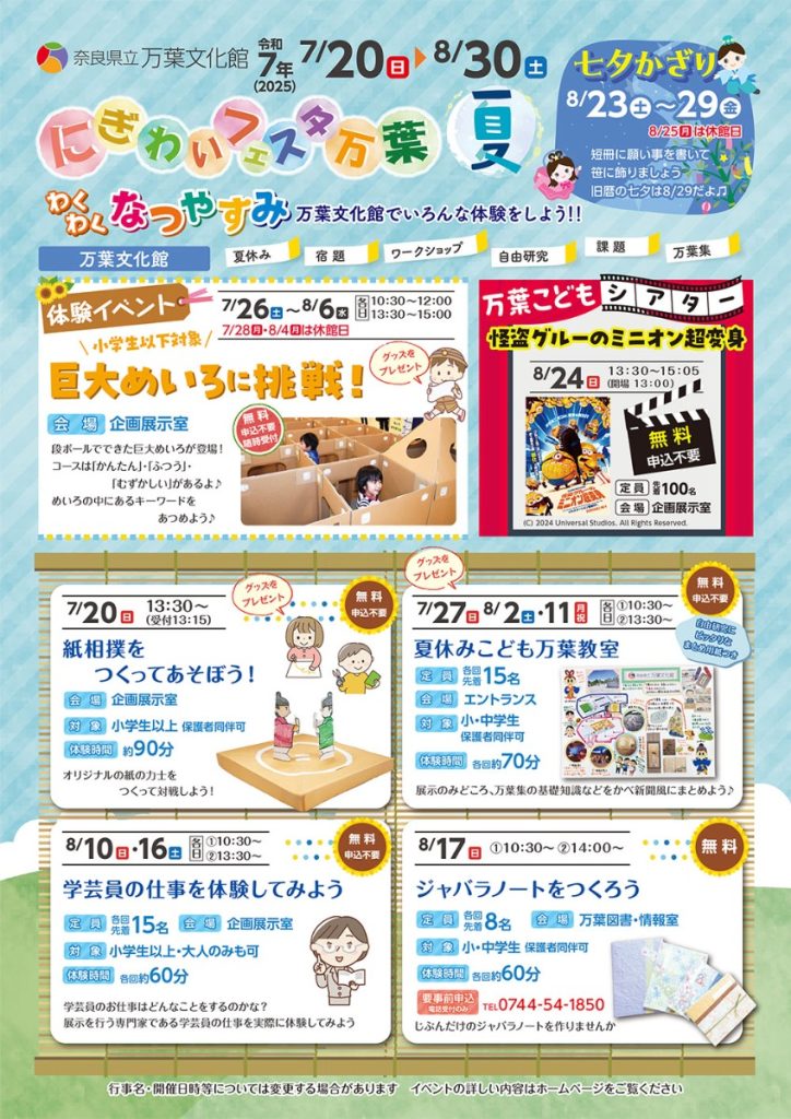 奈良県明日香村の『奈良県立 万葉文化館』にて、今年もわくわくの夏休みイベント「にぎわいフェスタ万葉 夏」を開催!