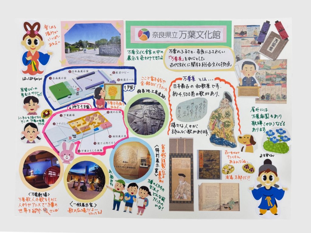 展示のみどころや万葉集の基礎知識などをかべ新聞風にまとめよう♪ 自由研究にピッタリなまとめ用紙つき。