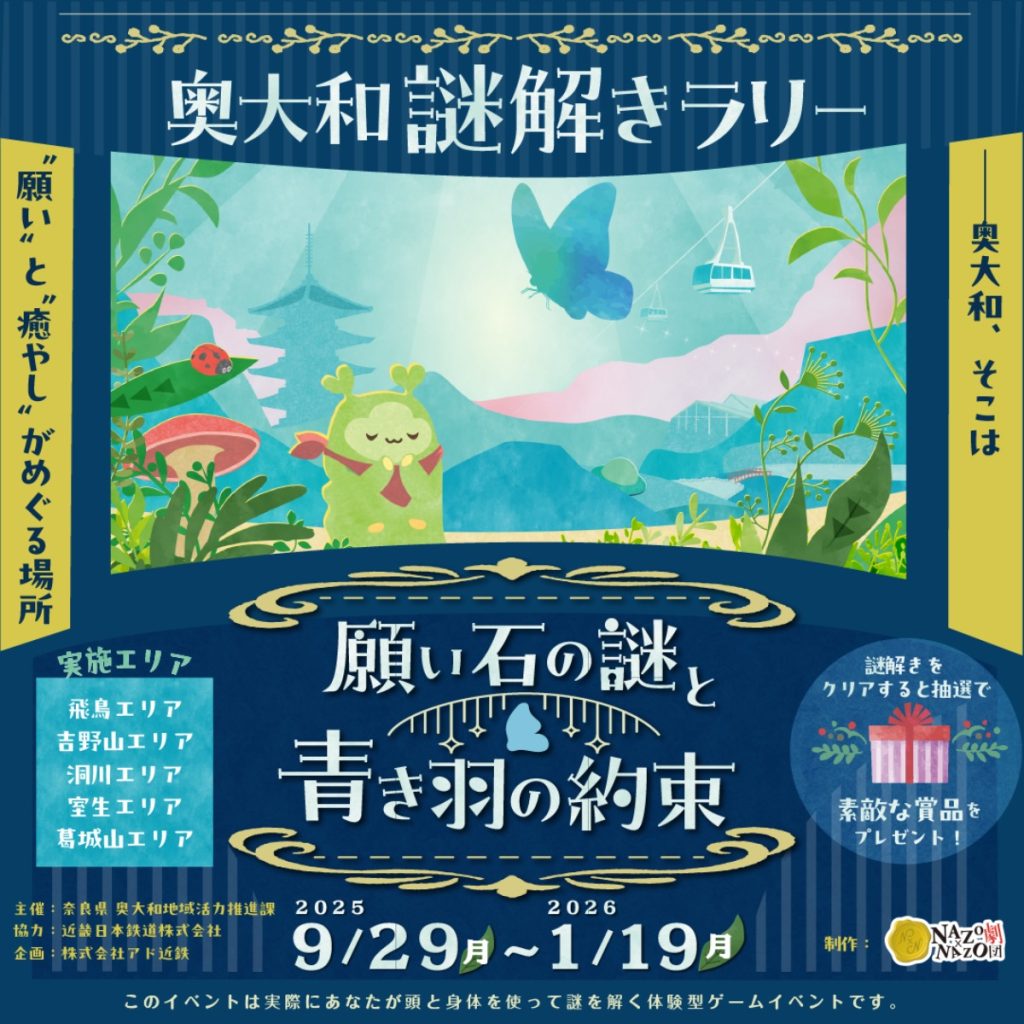 本企画は、奥大和に点在する5つのエリアを、物語に沿って巡る「リアル謎解きラリー」。