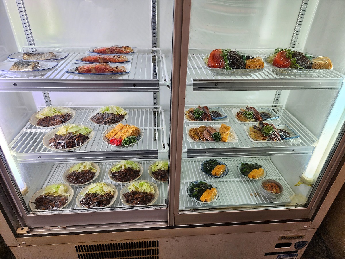 ザ・大衆食堂という佇まいの『涌本食堂』では、うどんや丼ぶりなどのメニューが豊富な上にショーケースのおかずも選べて色んな組み合わせの食事が楽しめます。