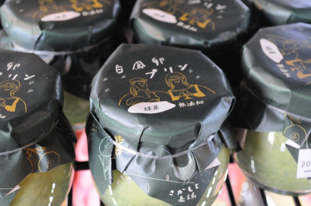 『さかもと養鶏』こだわりの「白鳳卵(はくほうらん)」や、その「白鳳卵」をふんだんに使用したスイーツ、加工食品が販売されている。