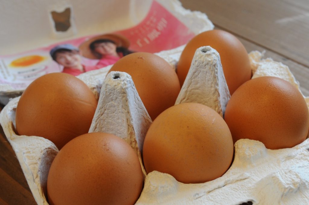 オリジナル配合の飼料と細やかな体重管理で美味しく育った赤玉『白鳳卵』。生臭さがなくコクが強い。