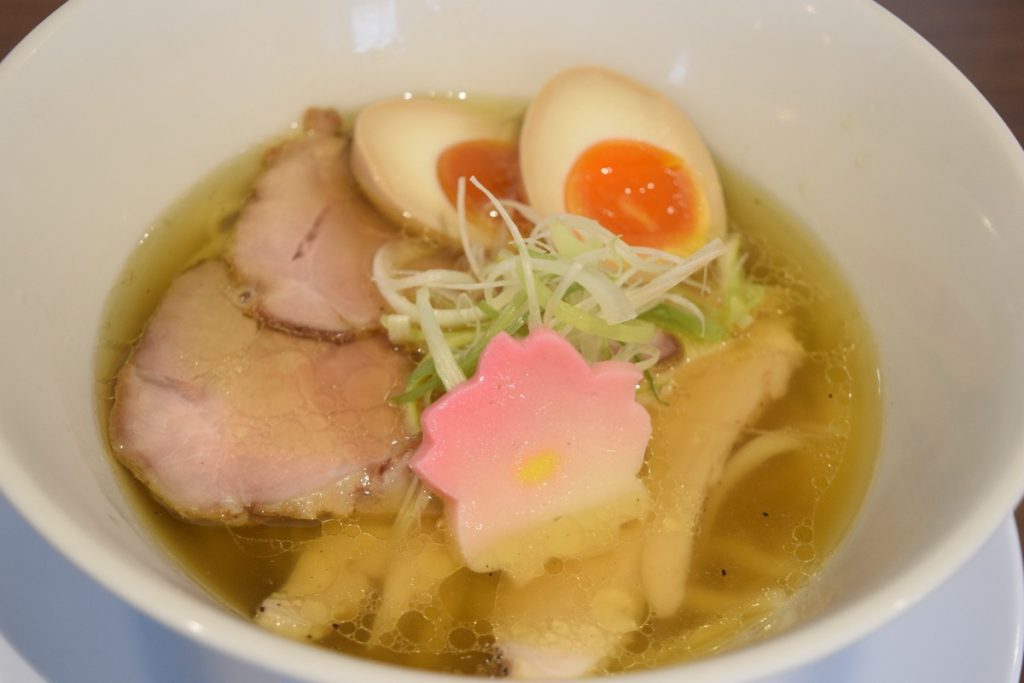 最近こんなオシャレなラーメン屋さんが増えてきましたね。トッピングの桜の生麩も可愛く、化学調味料不使用で体にもやさしいラーメンをぜひ食べてみてください!