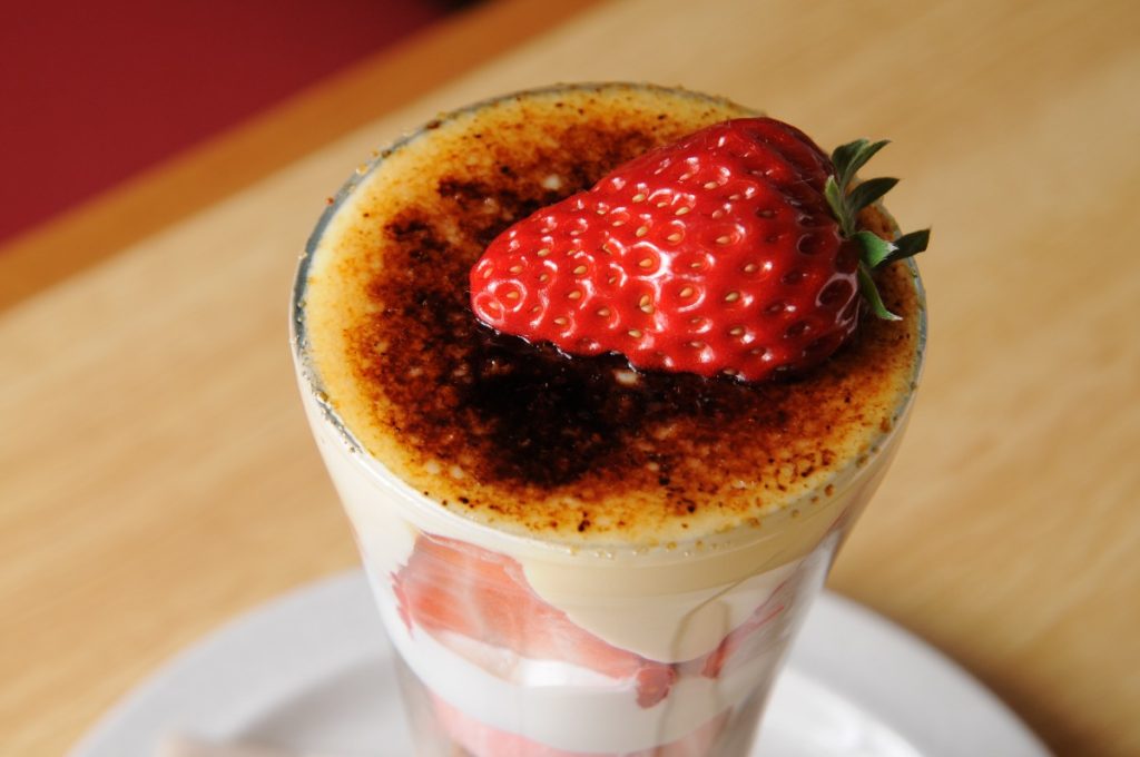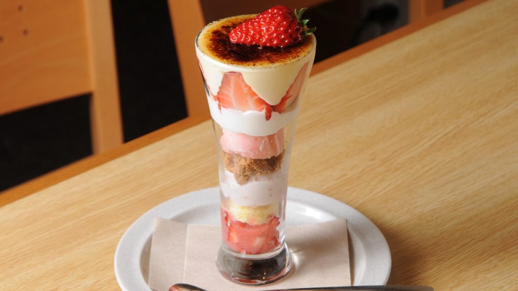 地元食材を活かしたお店のいちごブリュレパフェ【ごせ町料理koe|御所市】