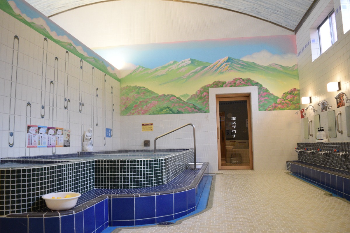 男湯の壁には金剛山、女湯には葛城山の風景画が描かれている。