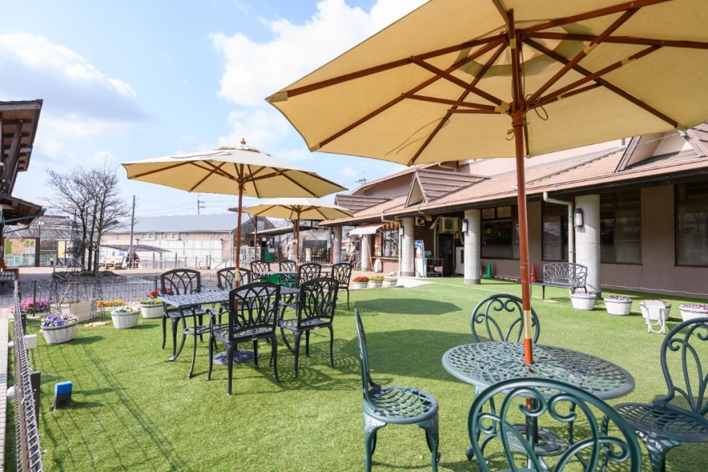 天気のいい日は、テラス「ふれあい広場」のベンチに座って、ゆっくり景色を眺めながら過ごすのがおすすめ。
