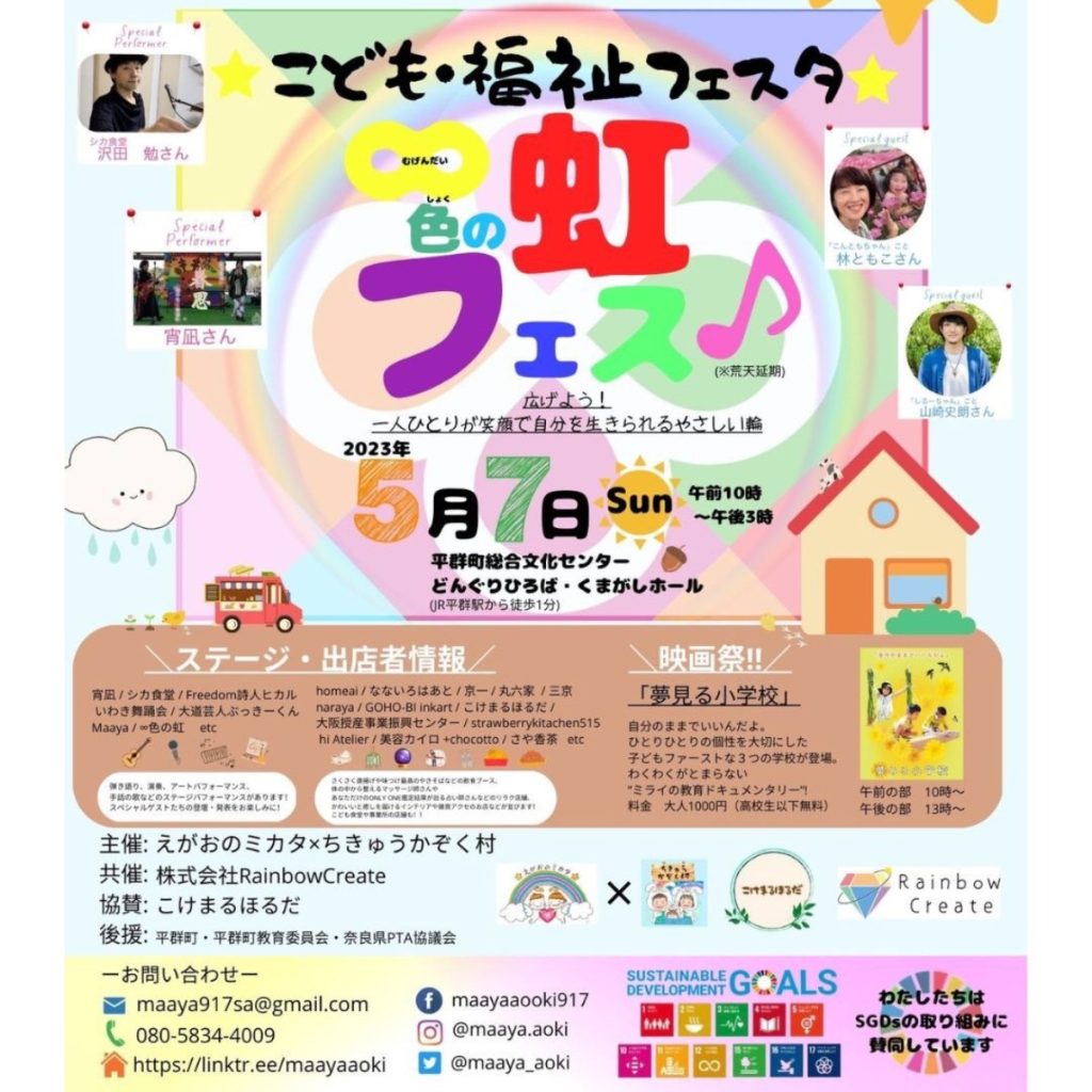 TOPイベント【平群町】2023年5月7日㈰こども福祉フェスタ「∞色の虹フェス」開催!
