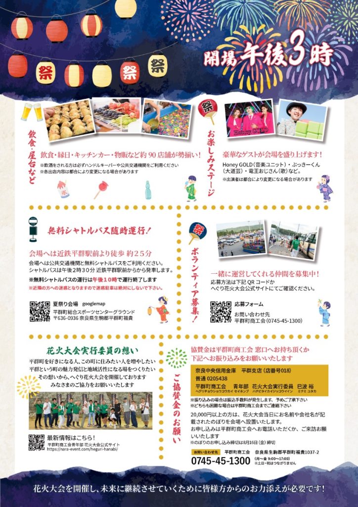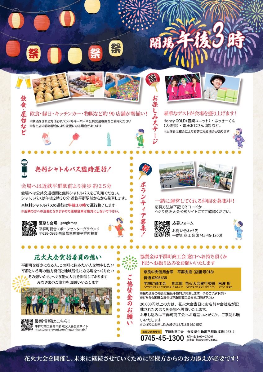 ※花火大会へは近鉄平群駅からの無料シャトルバスをご利用下さい。