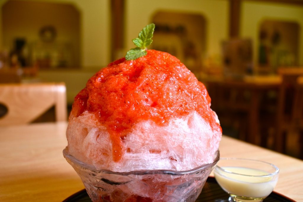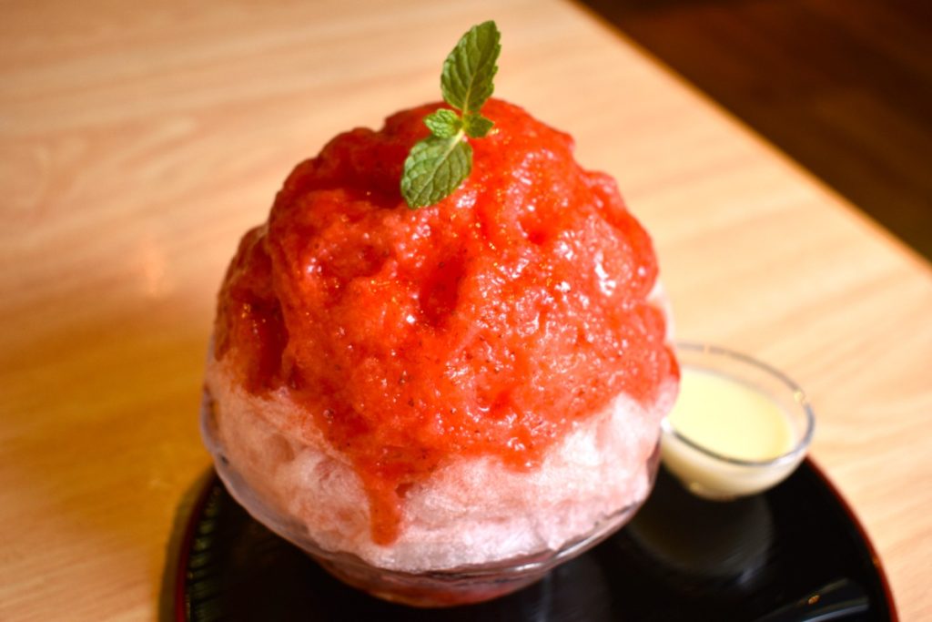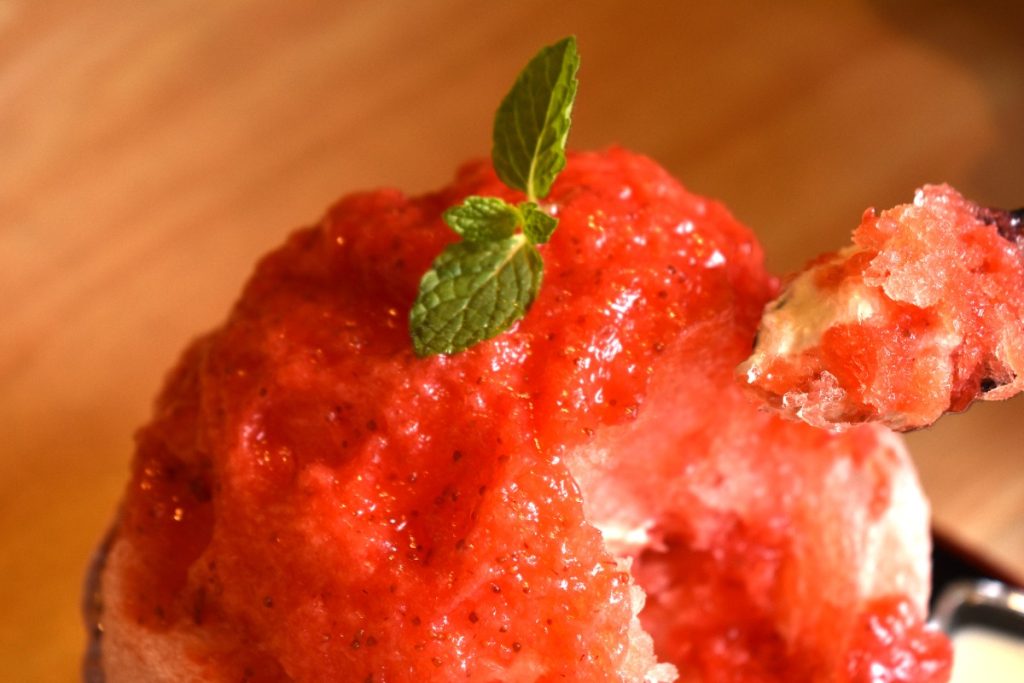 氷は『日乃出製氷』(奈良市)のものを使用しており、きめが細かくふわふわした食感だ。