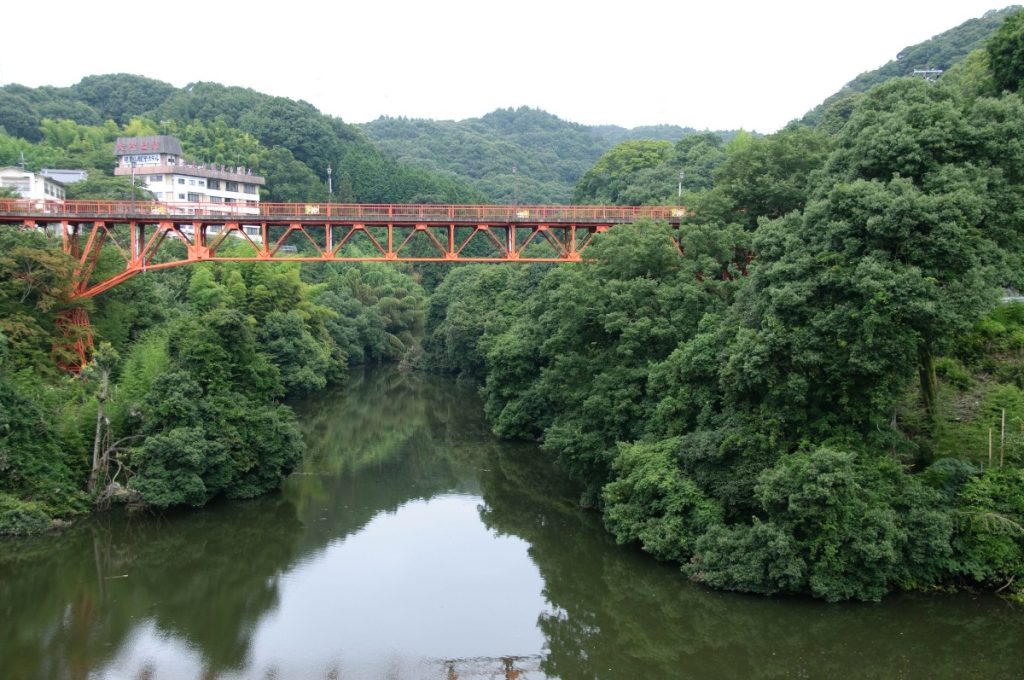 また、信貴山朝護孫子寺への参道にある、平群町と三郷町を隔てる大門池に架かる全長106mの橋は、国の登録有形文化財に登録されており、その名も「開運橋」。