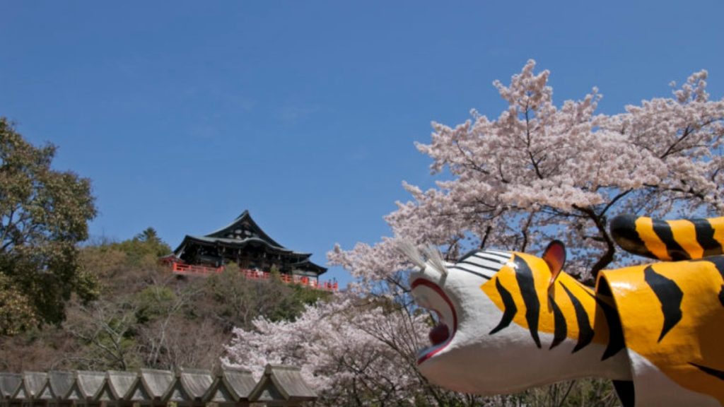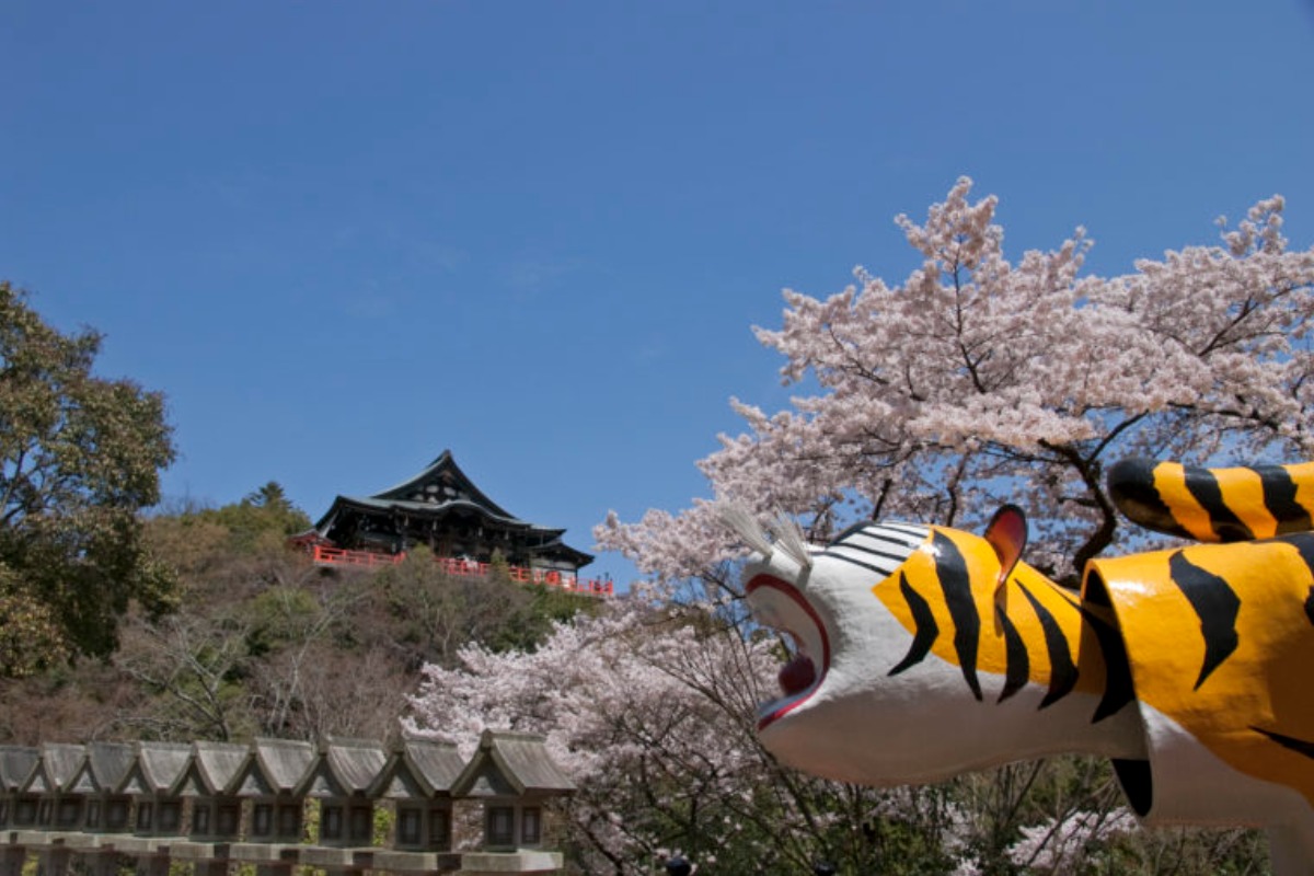 昼も夜も美しい桜スポット。お堂や寅が桜で彩られる奈良県平群町の「信貴山朝護孫子寺」