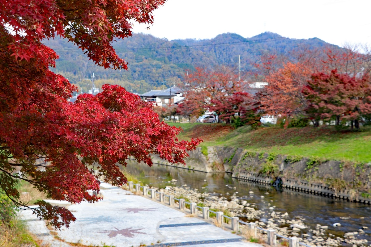 「神々の時代にも聞いたことがない。このように竜田川が真っ赤に染まっている光景は。」 競技かるたを題材にした大人気漫画「ちはやふる」の由来ともなった歌。 「ちはやぶる(ちはやふる)」とは、神様にかかる枕詞。 日本神話やギリシャ神話などのように、摩訶不思議なことが起こる「神代」の時代でも見たことがないほど、竜田川がもみじで唐紅に染まっている様子を感動と共に表現している歌。 詠み手の在原業平は「伊勢物語」の主人公とされている、平安時代きってののプレイボーイ。 清和天皇の女御として陽成天皇の母となった藤原高子との関係が有名。 そんな在原業平が恋の歌ではなく、このような奈良の風景を詠んだことに驚きと、それほど秋の竜田川が美しかったことがうかがい知れますね。