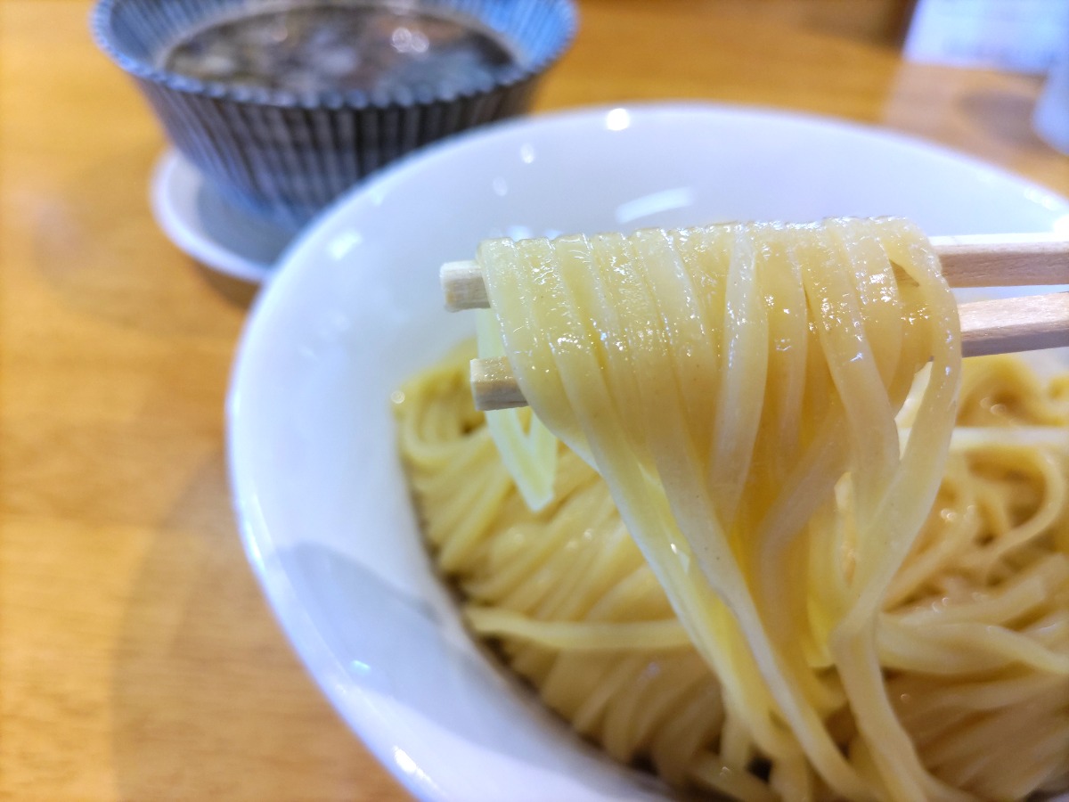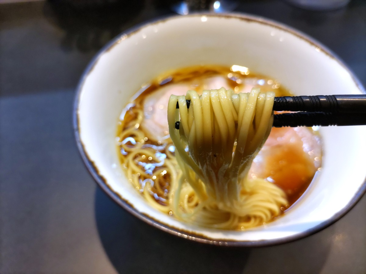 京小麦などを配合した風味豊かでツルリとした食感の自家製麺は、麺単体だけでもずっとすすっていられる幸福感。