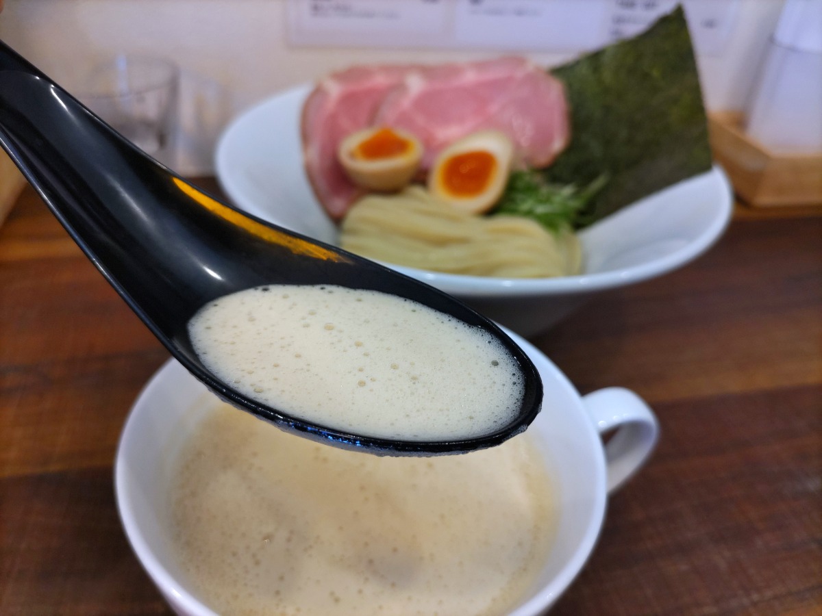 修業先を彷彿とさせる泡立ったクリーミーな鶏白湯スープはマッタリとコクがあって、スモーキーな燻製された香りのまたらないチャーシューが秀逸。