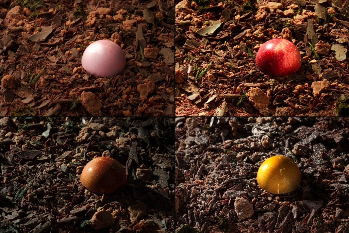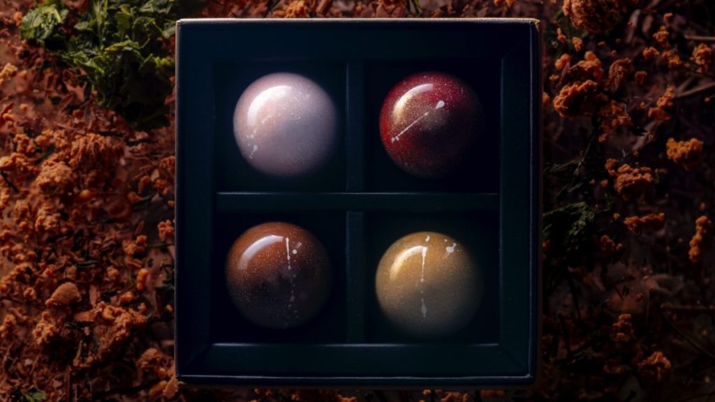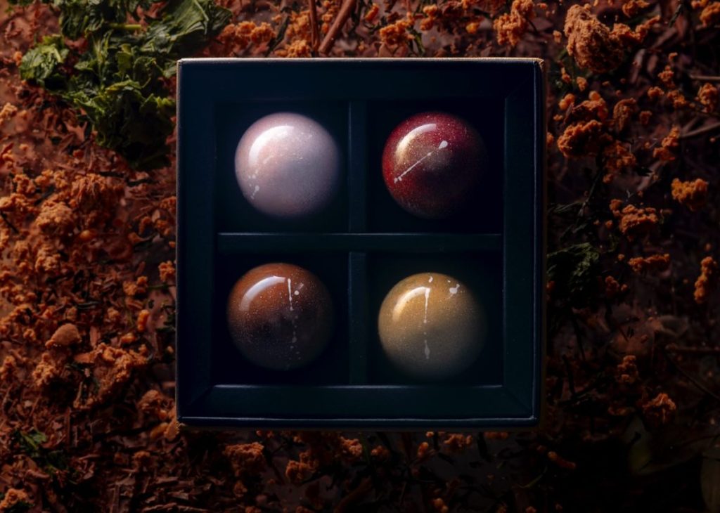 四季それぞれを表現した4粒のショコラを通じて、土と季節の循環が生み出すエネルギーを五感で感じられる。