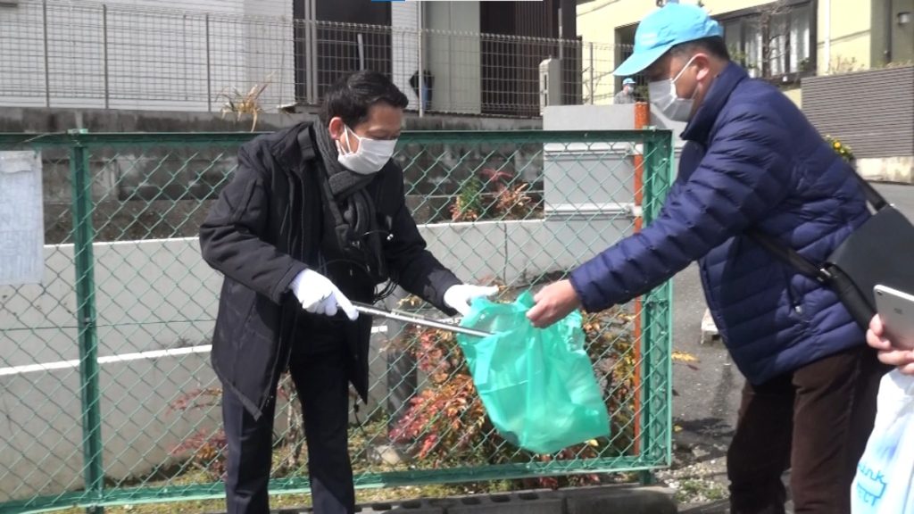 当日は小紫市長もゴミ拾いに参加。